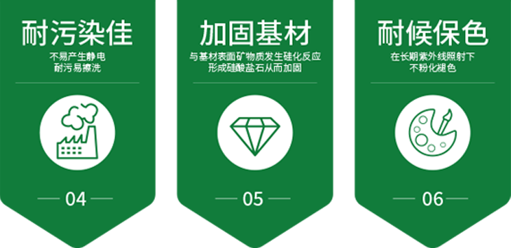 弗克風?硅質漆是單組分的水性無機涂料,采用無機硅酸鹽高分子復合技術,優(yōu)選特種硅酸鹽材料、改性助劑,突破性地解決了乳膠漆耐黃變差、耐污性差、壽命短的缺點, 具有高耐候性和耐火性的健康型涂料特點。